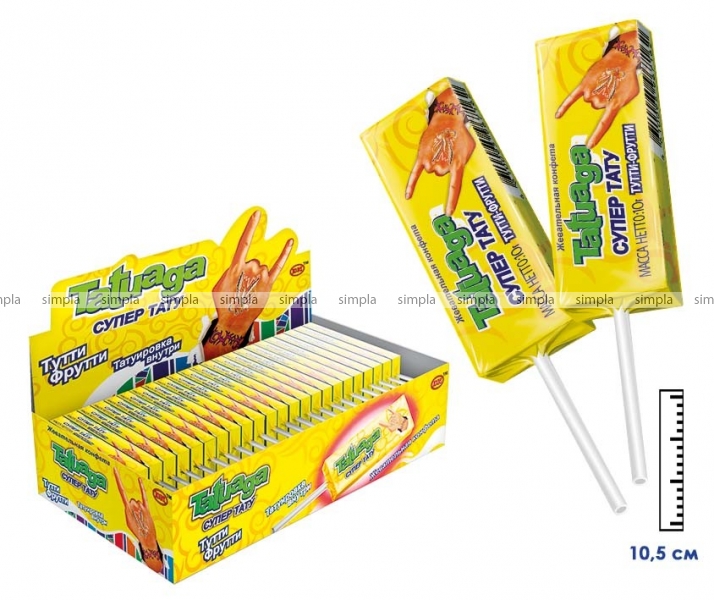 В нашем интернет-магазине Вы можете купить "Жевательная конфета на палочке Tatuaga с тату Тутти-Фрутти (Пакистан) 10г" по низкой оптовой цене с быстрой и удобной доставкой в г.Белгород (Белгородская область). Мы предлагаем широкий ассортимент импортных сладостей и напитков от проверенных поставщиков и реализуем продукцию во всех регионах РФ.